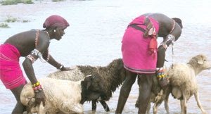 Herders in Laikipia County shepherd their animals to safer grounds. |